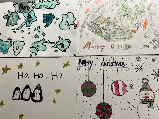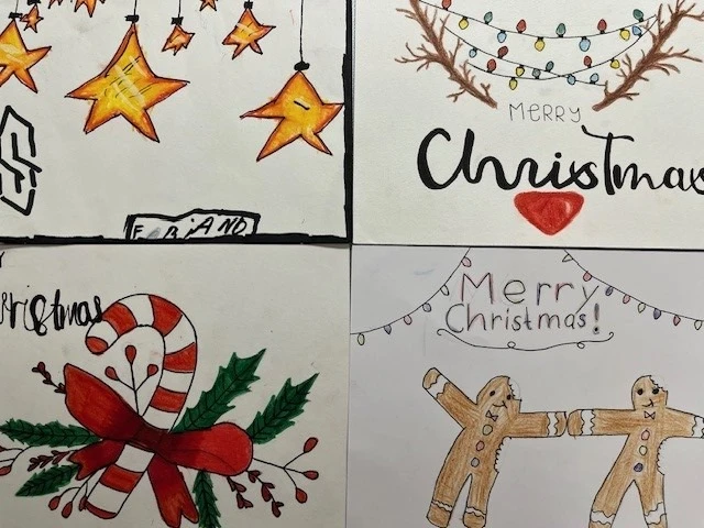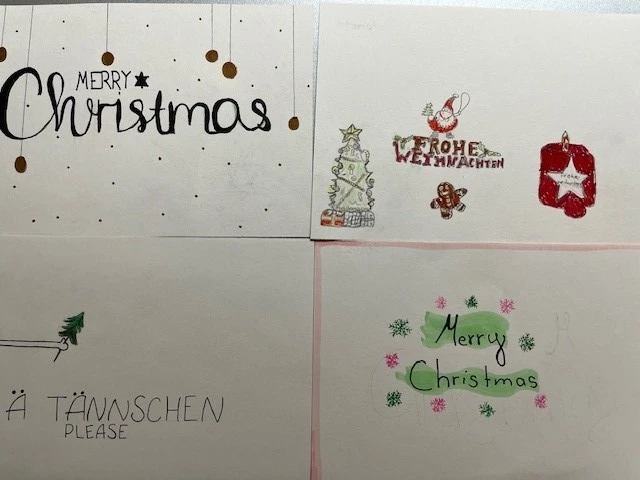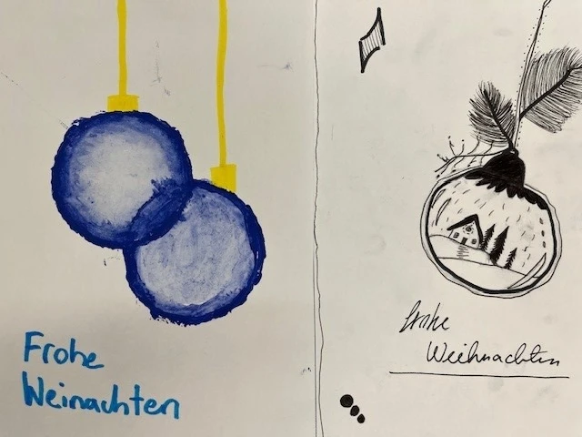 Impressionen: Arbeiten im Bildnerischen Gestalten "Weihnachtskarten" der Klassen B 1b, B 1c, B 2c, B 2a