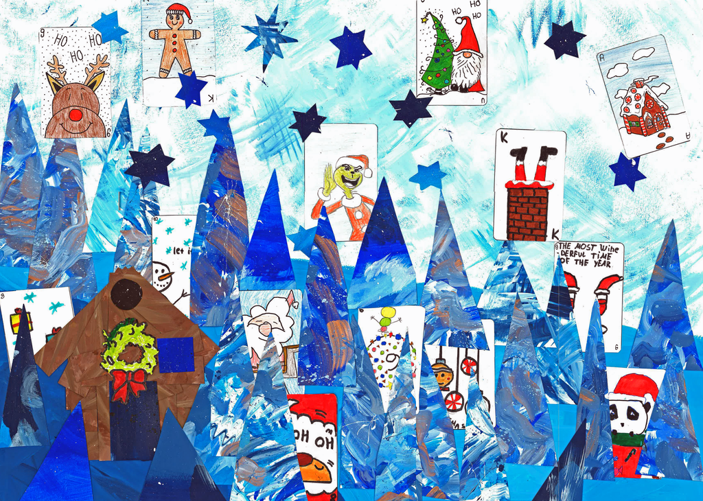 Impressionen: Arbeiten im Bildnerischen Gestalten "Weihnachtskarten" der Klassen B 1b, B 1c, B 2c, B 2a